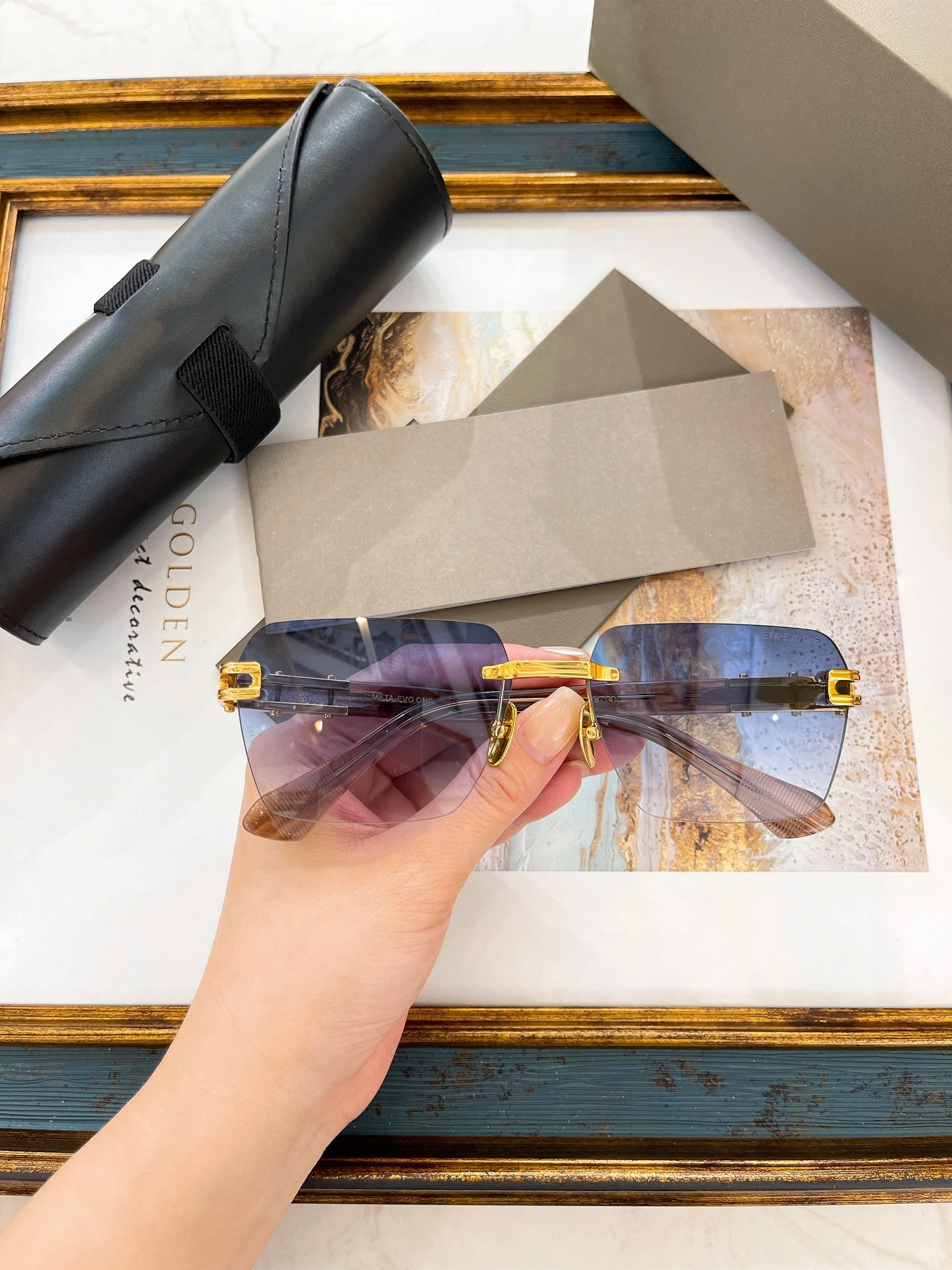 Fashionable borderless sunglasses Gradient lenses Men's sunglasses Brand designer Top quality