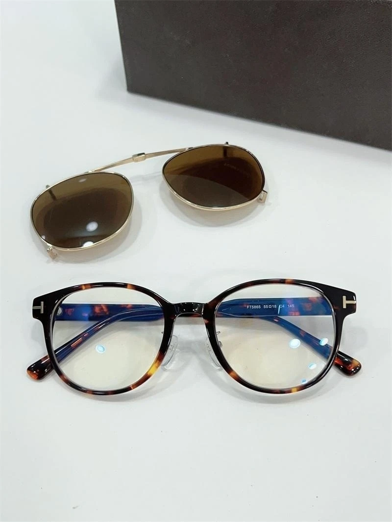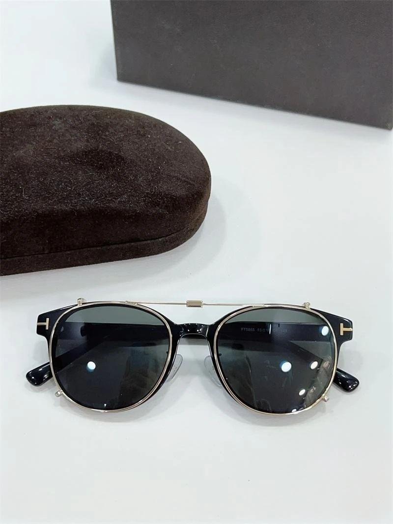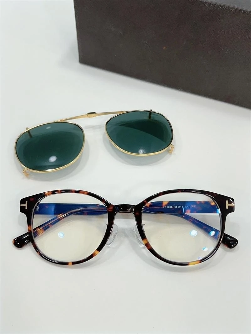 Luxury Fashion Male Female Sunglasses Clip On Sunglasses Tom For Round Glasses With Clip Men's Sunglasses FT5865 Acetate Shades