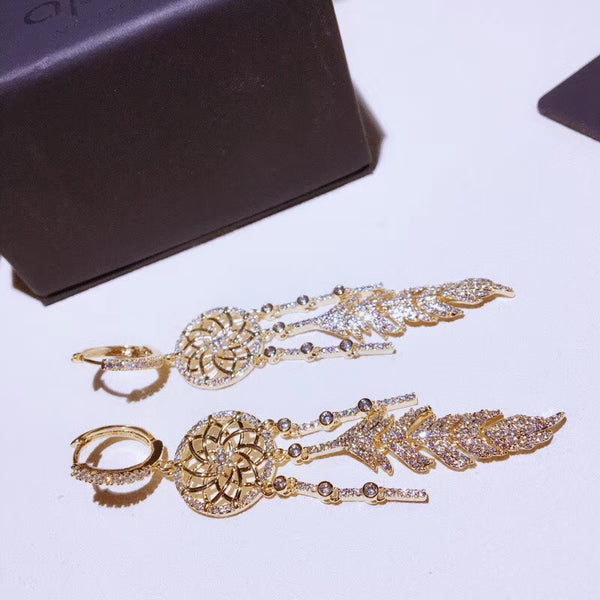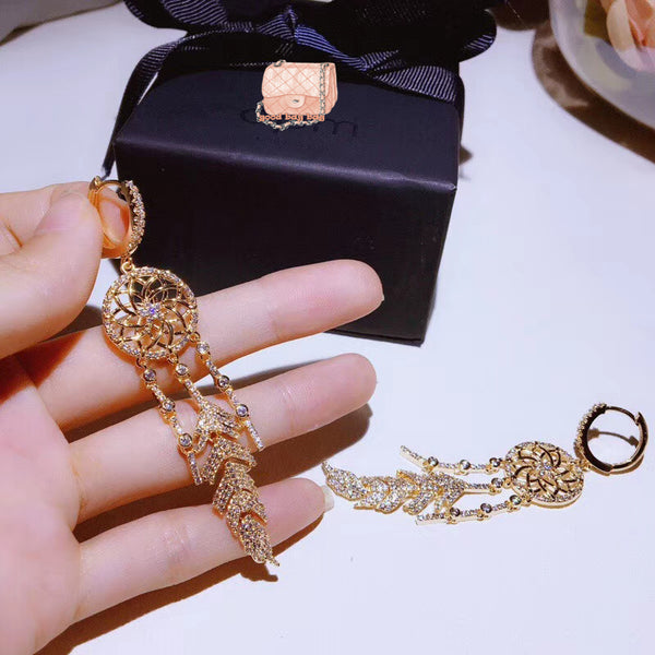 J-jewelry APM Monaco Woman's Long-style Dreamnet tassels earrings sweet circle metal hollow diamond earrings