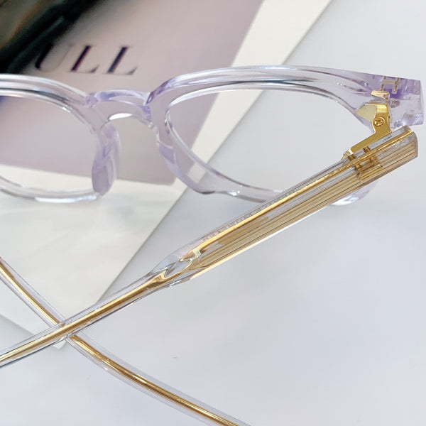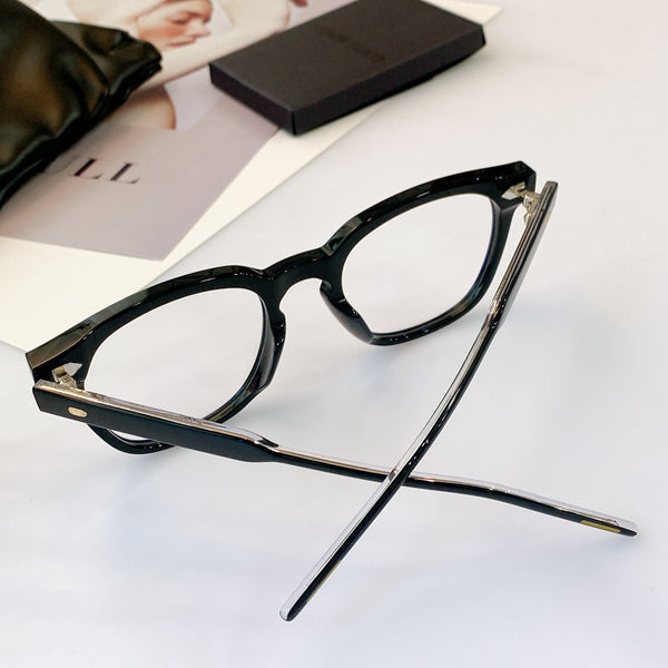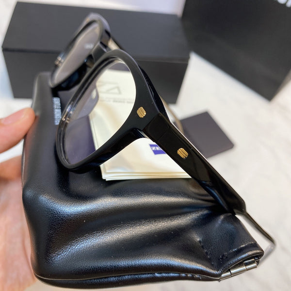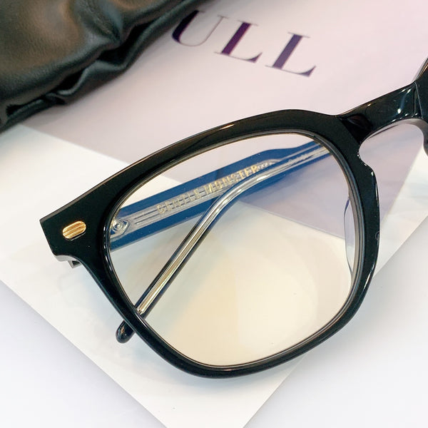 Kubo 01 is a black acetate frame that features an updated rendition of the Wellington style. This square frame is fitted with 100% UV protection and blue light filtering clear Zeiss lenses and highlighted with a keyhole bridge and dual-colored temples.Frame Front: 147.8mm, Frame Side: 150mm, Lens Width: 51.6mm, Lens Height: 43.6mm